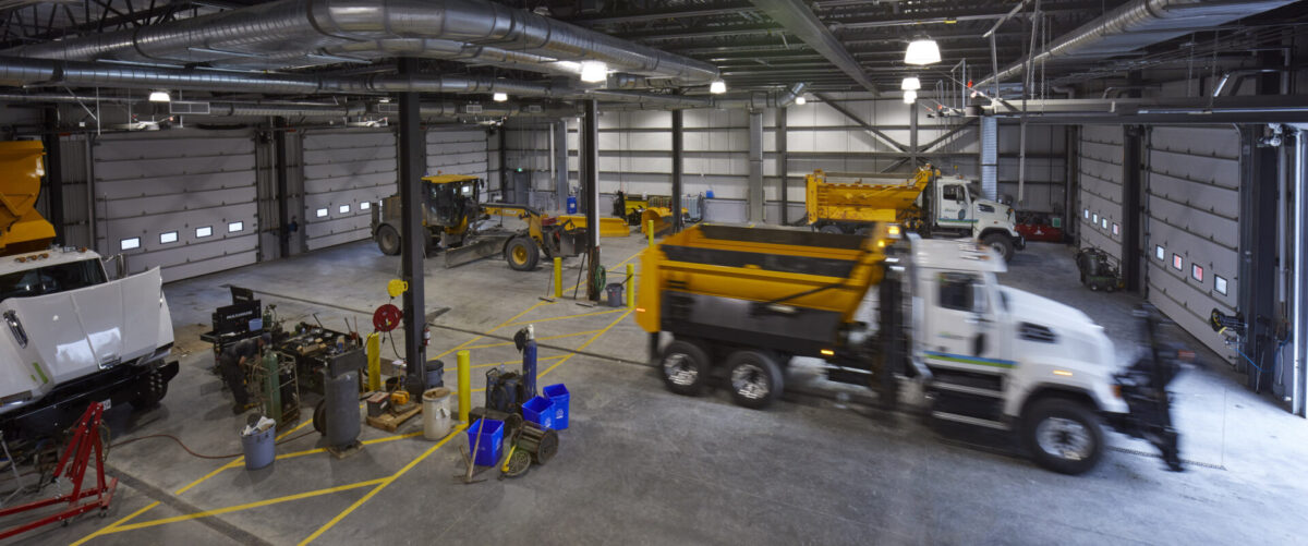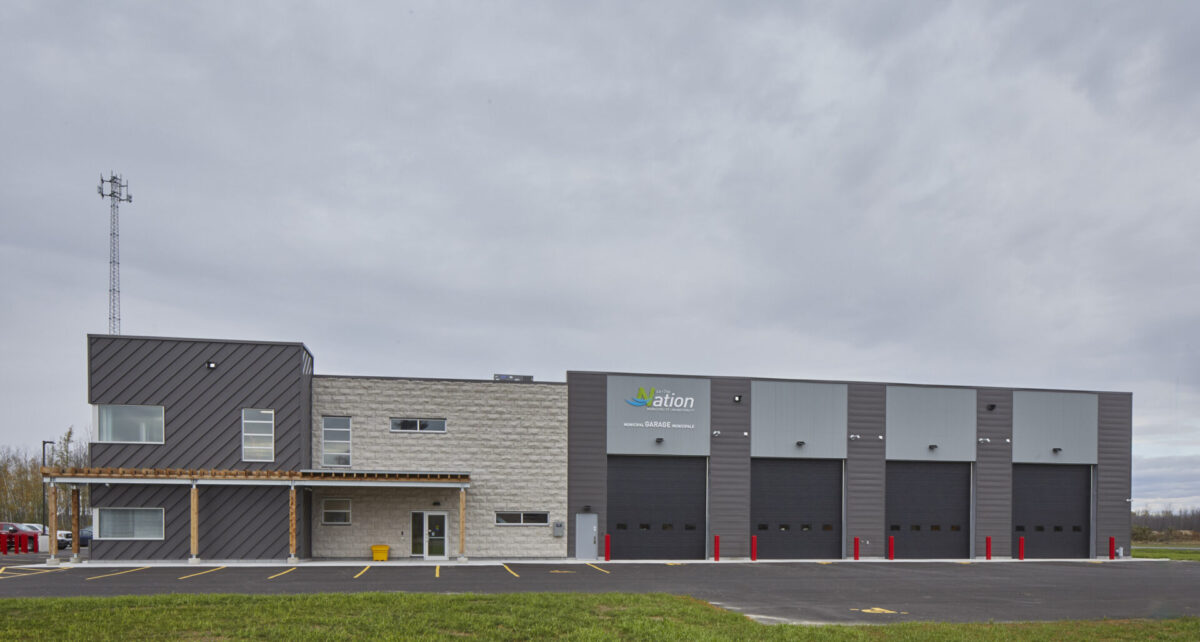 This new operational facility for the Nation Township required service garage and functional layout for road maintenance vehicles as well as office, training, meeting and operational space.